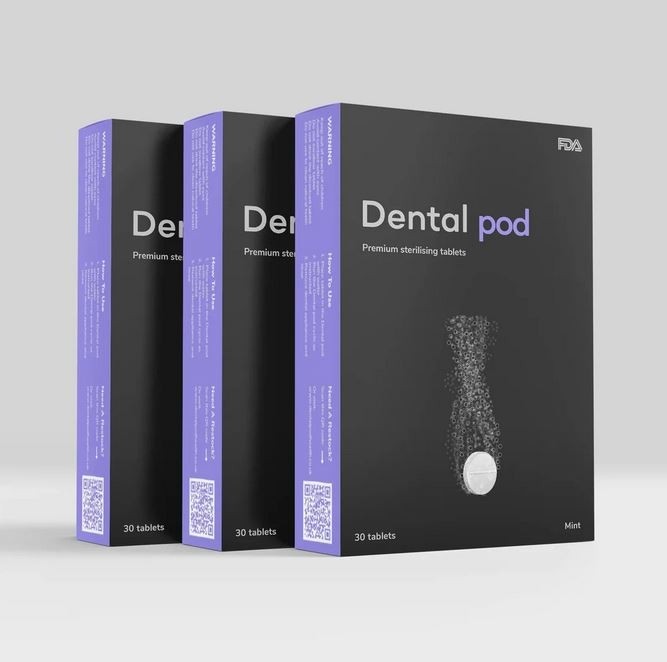 Medtem ko Dental pod deluje kot zmogljiva zobna ščetka, dezinfekcijske (čistilne) tablete delujejo kot zobna pasta. Uničijo 99,9 % bakterij in uporablja najnovejšo kemično tehnologijo za izboljšanje postopka čiščenja zobnih aparatov. Te tablete so popoln partner za vaš Dental pod. Medtem ko Dental Pod odstrani vse delce, tako da ostane vaš aparat bleščeče čist, tablete za ultrazvočno ojačitev naredijo to še korak dlje in pomagajo odstraniti madeže ter nevarne in patogene bakterije. Poleg tega Dental Pod ne more popolnoma odstraniti neprijetnega okusa in vonja. Tablete bodo pustile svež okus mete in vonj, ki vam bo všeč.